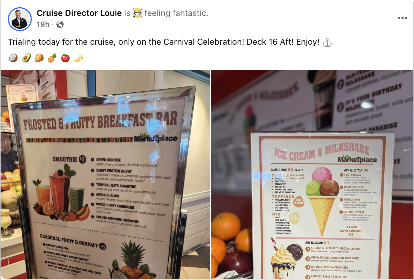 Carnival Testing Upcharge Ice Cream and Smoothies on Celebration