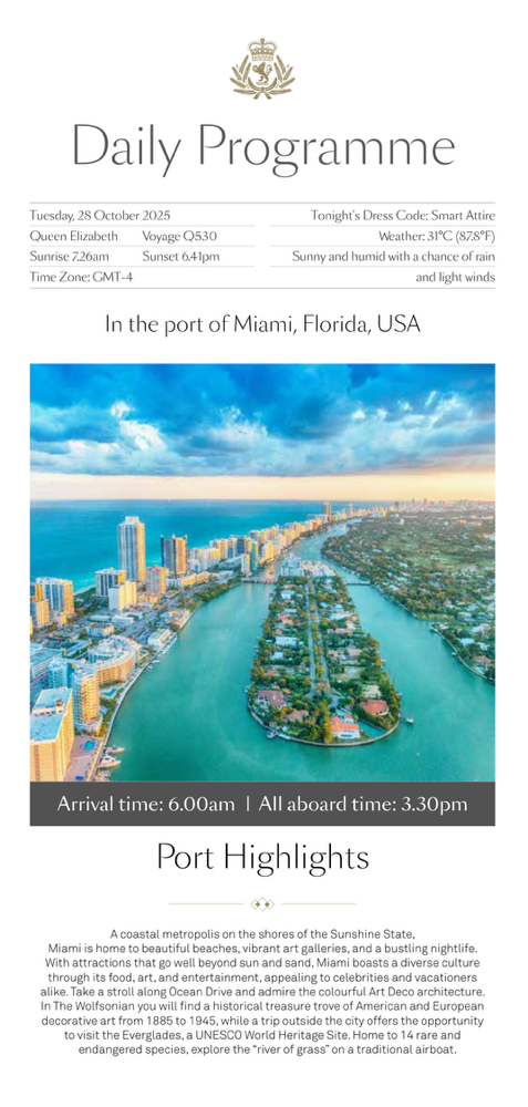 48 hours after disembarking Virgin Voyages’ Brilliant Lady, I found myself right back where I started – PortMiami. Clearly, I didn’t get enough time at sea because I’m trading in edgy entertainment and drag shows at sea for something a little more refined… or at least that’s what Cunard would like us to believe.