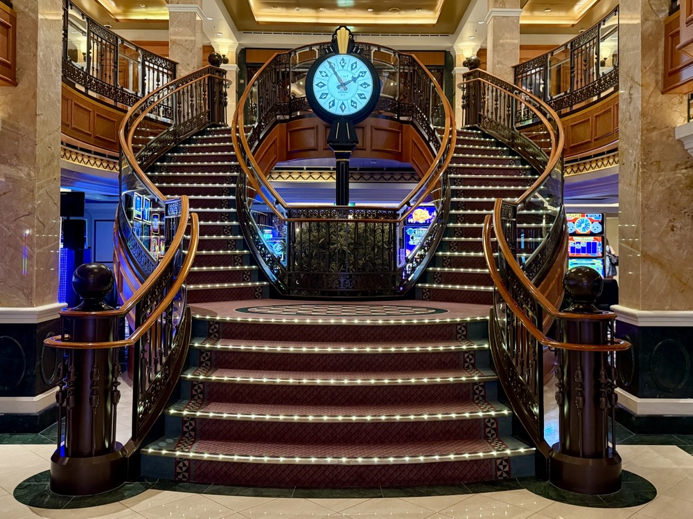 Sure, fine by me. I’m not picky about which deck I’m eating dinner at. So up the grand staircase I went, along with another couple who had also been redirected. Once we got to Deck 3, we were met by another host who looked confused and promptly told both of us to go back down to Deck 2 because they had tables available there. The other couple, rightfully annoyed, said, “They just sent us up here.” The host waved someone over and saying, “Take them to a table number….” then called someone else over and said,” walk this gentleman (that’s me) through the dining room and just find an open table.”