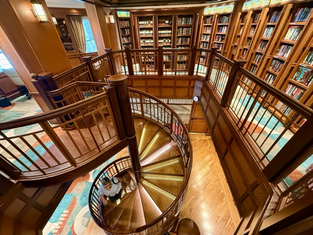 After the curtain call, I took a stroll around the ship’s wraparound promenade deck – one of my favorite features on any classic-style vessel. Inside, the Queen’s Room ballroom had a few couples dancing as yet another live band played standards with a vocalist. It was a reminder of the demographic onboard.