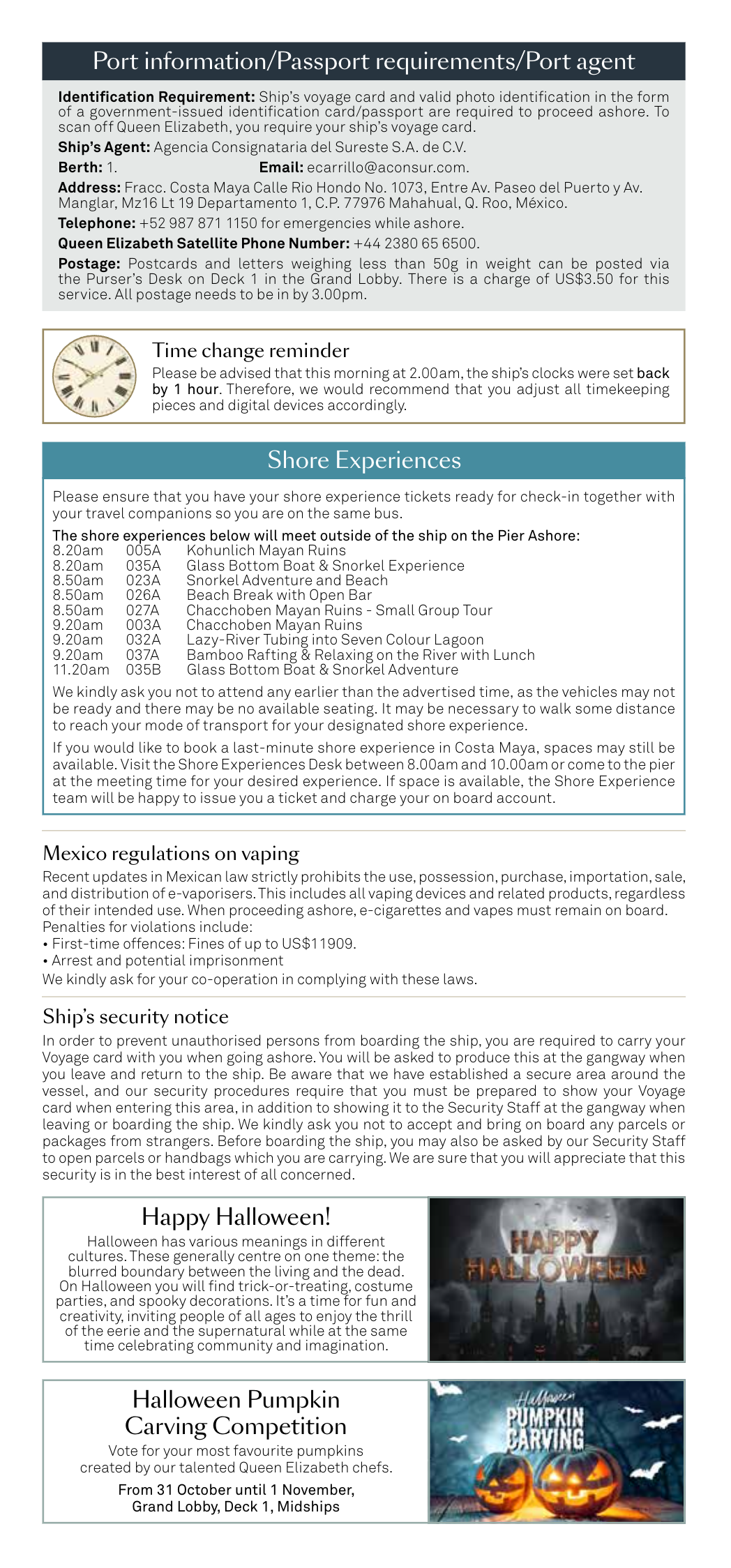 Cunard Queen Elizabeth Western Caribbean Cruise Review – Day 4: October 31, 2025