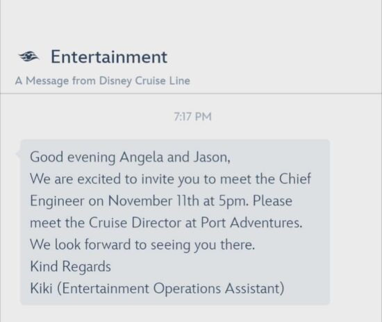 As we were finishing dinner, we were pleasantly surprised to receive a notification in the Disney Navigator app: