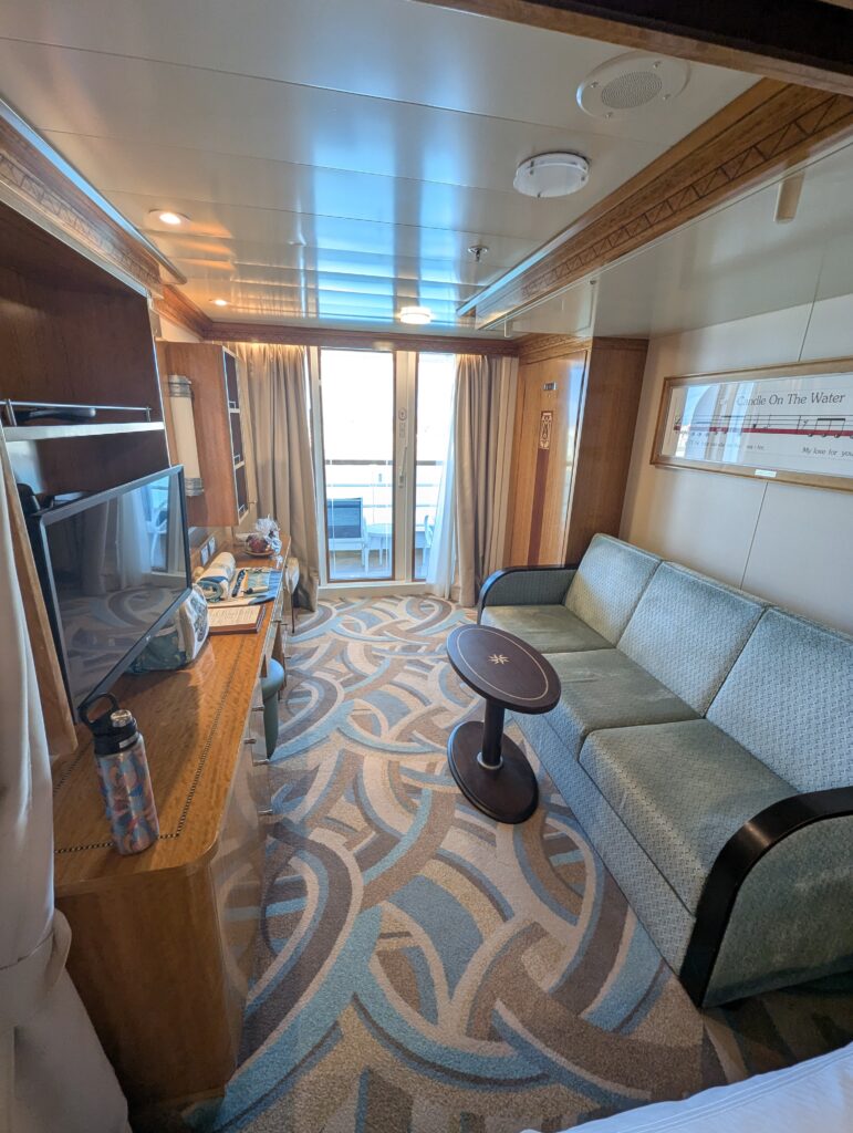 We stayed in Concierge stateroom 8026, located on the port side between the midship and forward elevators. Concierge rooms on the Disney Magic aren’t any larger than a standard verandah category, but they do come dressed up with upgraded décor and a few elevated amenities that make the space feel more premium.