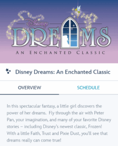 | 6:00 PM – 7:00 PM | Disney Dreams: An Enchanted Classic | Walt Disney Theatre | |