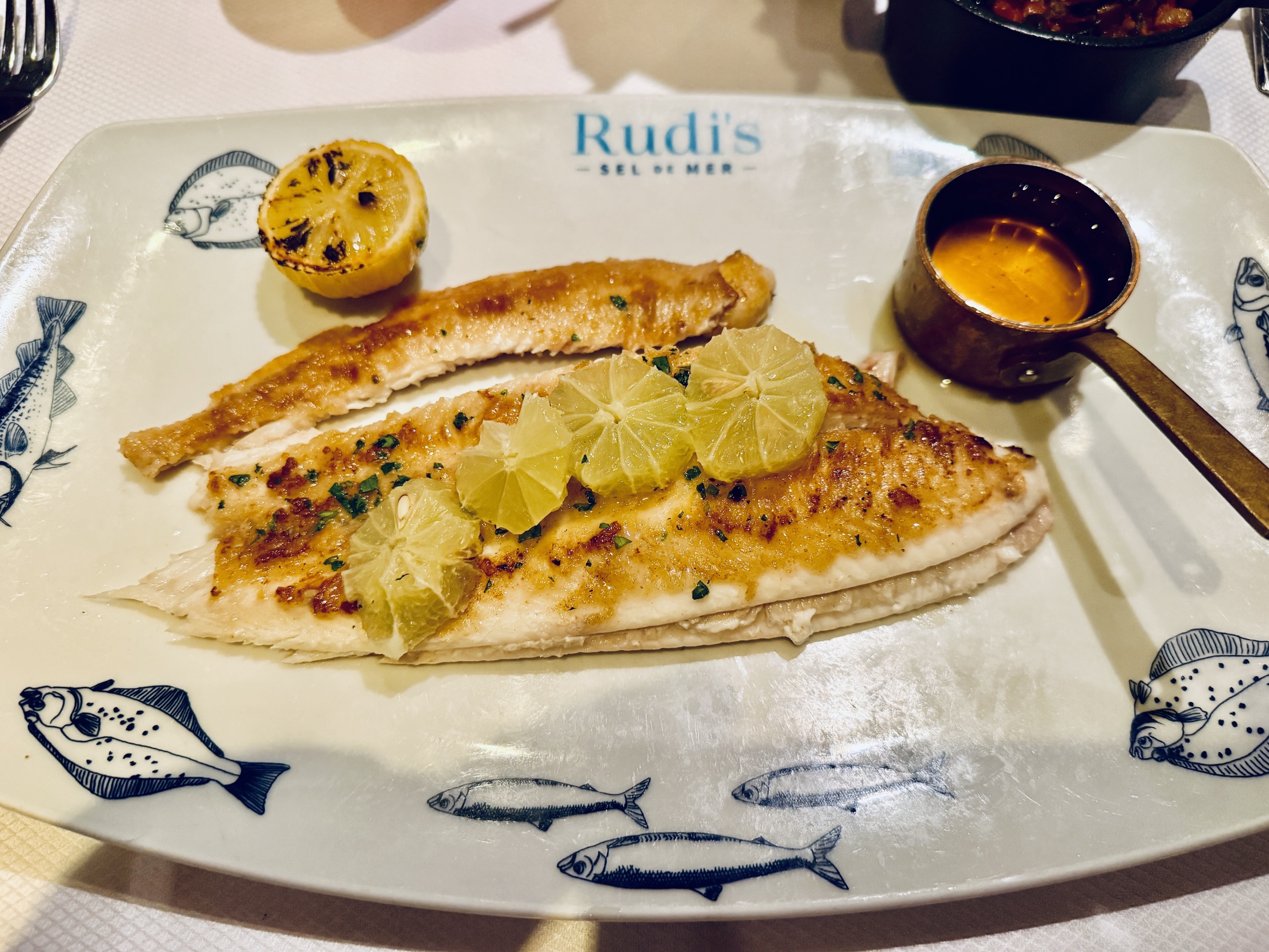 Najib wheeled over the cart with the Dover sole, did the full tableside deboning, and served it up with a little bit of roe on the side. As expected, it was delicious. Light, flaky, buttery, and exactly the kind of dish that reminds you why Rudi’s can be worth the extra money. So yes, the restaurant definitely redeemed itself after that questionable steak the other night.