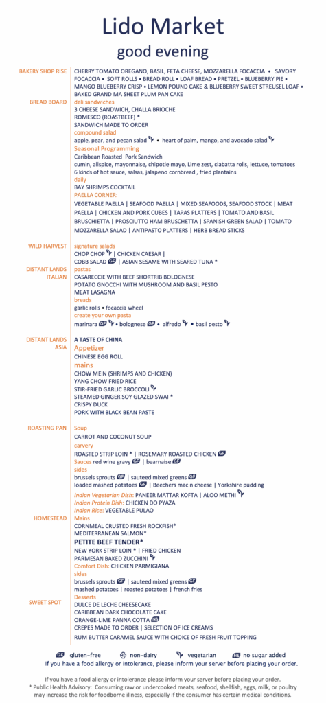 But before diving in, let’s take a look at not only Rudi’s menu, but the menus for the Lido Market and Main Dining Room tonight:
