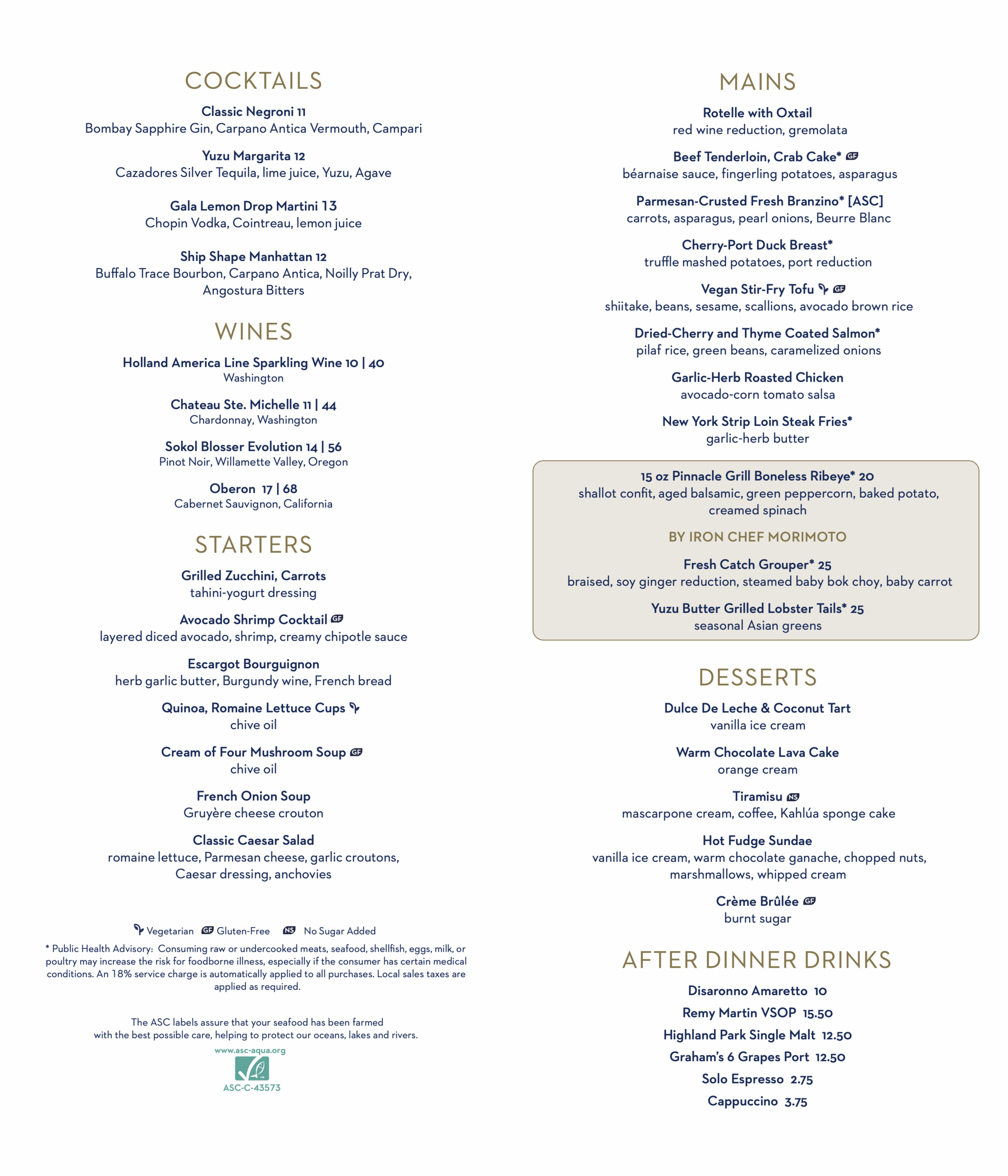 Sorry to put a damper on things with that last bit, but let’s swing the mood back where it belongs — food. Tonight was the second and final dressy night of the cruise and if you’re wondering what “dressy” means on Holland America these days, go take a peek at yesterday’s report. Spoiler alert: the HAL of today is not the HAL of yesterday! It’s still a night to put on something nicer than jeans and a polo, but you don’t need to look like you’re heading to a state dinner.