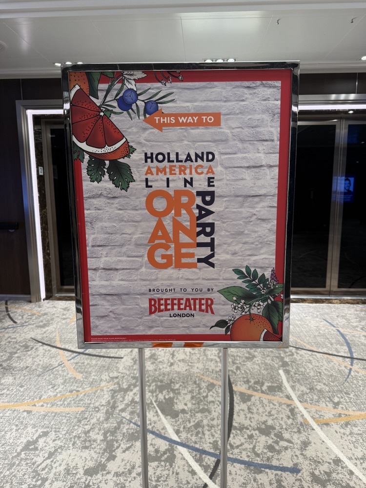 Sea days always come packed with activities, and today’s no exception. On Holland America that means trivia, pickleball, cooking demos, art auctions nobody asked for, and of course the main event tonight, the Orange Party, when HAL celebrates their Dutch roots and everyone looks like a Creamsicle. More on that in a bit.