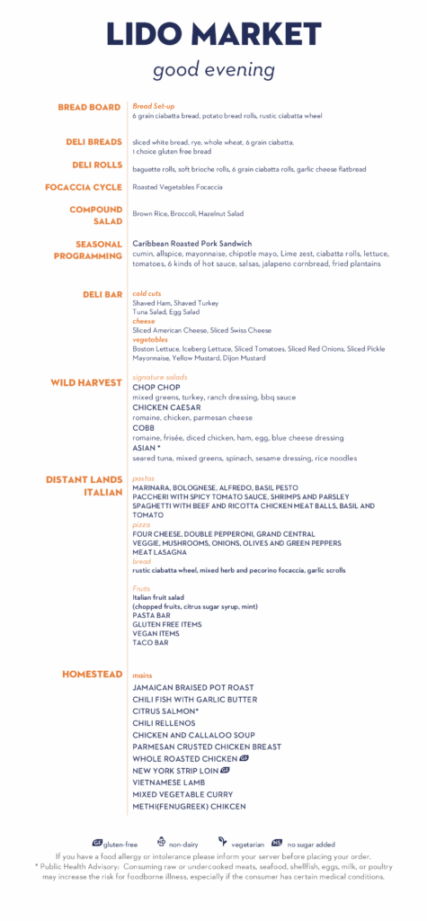 When lunchtime rolls around, head to the Island BBQ, where the ship’s culinary team puts on a cookout with burgers, hot dogs, grilled chicken, salads, fruit, and desserts — all complimentary. It’s casual, beachy, and the food is surprisingly good and there’s plenty of picnic tables under cover to enjoy your food without blazing in the sun.