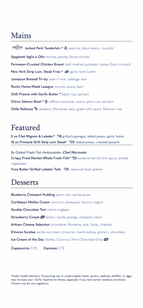 The captain made his evening announcement a little before dinner and shared some important updates about our stop in Jamaica. The port at Ocho Rios is once again open and welcoming cruise ships following the recent hurricane, but Falmouth and Montego Bay are still closed, expected to reopen in mid-December. When we arrive in Jamaica, Zuiderdam will first dock at the cargo pier around 6 a.m. to offload pallets of food, water, and aid supplies for local relief efforts before moving to the cruise pier around 8 a.m. for guests to disembark.