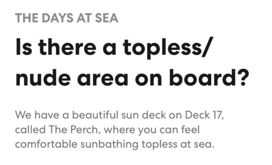 And speaking of the dress code… there’s a topless sun deck. Hello? Is this 1989? Nope – it’s just Virgin Voyages, where pretty much anything goes (within reason, of course). It’s part of what gives the line its fun, edgy, and slightly rebellious vibe.