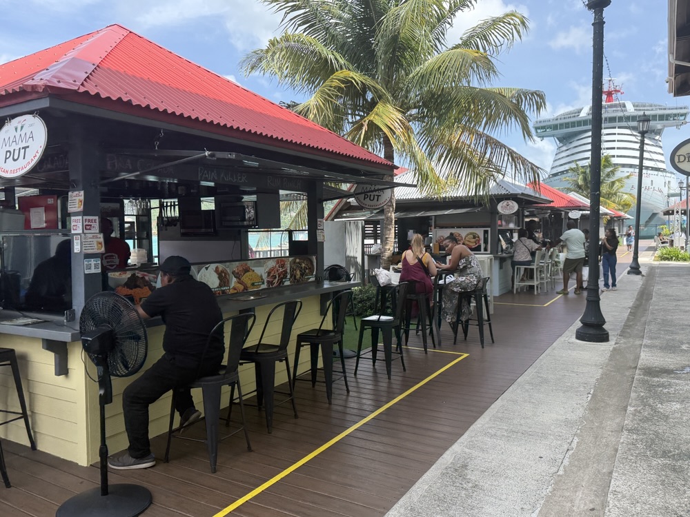 Brilliant Lady pulled into port right around 8 a.m., docking at the Cyril B. Romney Pier Park, which is where most ships tie up when visiting. The pier itself is directly adjacent to Road Town — Tortola’s capital — so you can literally walk off the ship and be in town within five minutes. The port area has a nice little setup with a few shops, food stalls (some with VERY pricey food like a $29 burger!), a cigar bar, and the obligatory array of jewelry stores for those who need to spend their casino winnings. There’s also a nice grassy area in the middle with a stage where a musician (who wasn’t all that bad) was playing throughout the day.