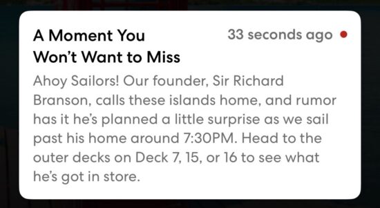 Now, of course, when someone says “Sir Richard Branson has a surprise planned,” the rumor mill goes into overdrive. People were tossing out guesses left and right — fireworks, a drone show, a lot of crazy speculation. Nobody knew which side of the ship to be on either, so it created a bit of confusion.