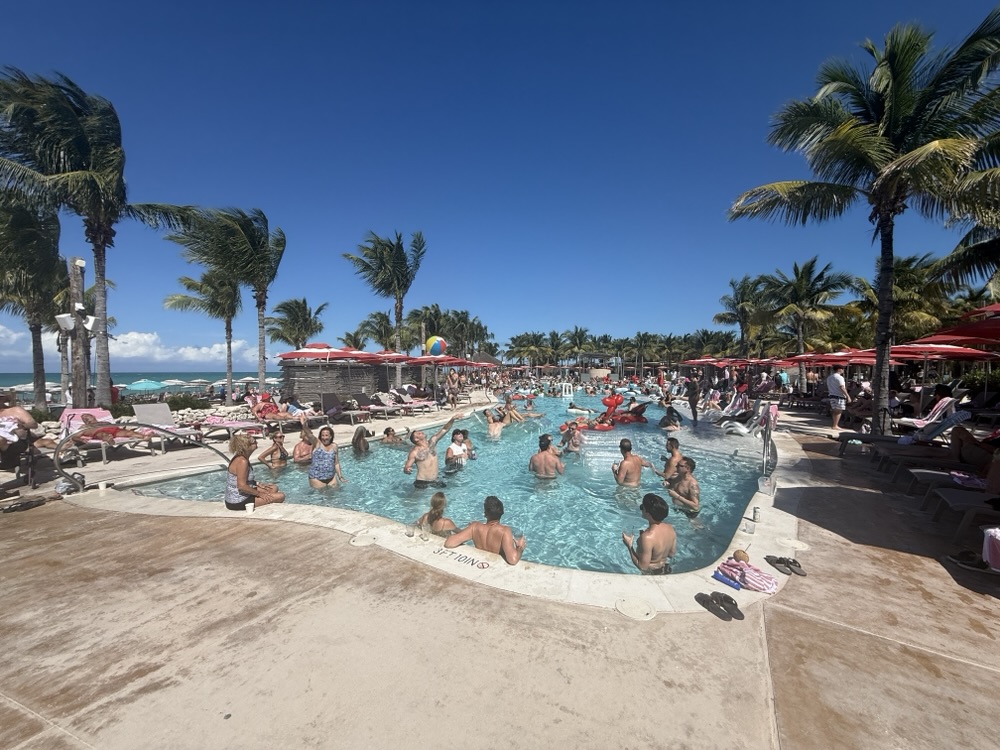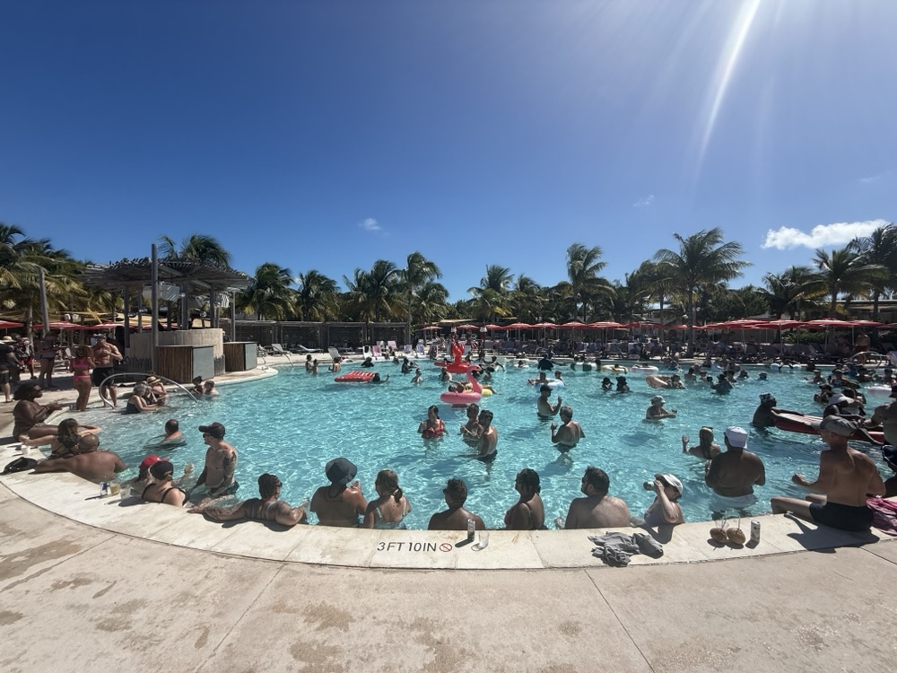 But here’s the part that made me do a double take: there are no lifeguards. None. Zero. Just signs everywhere letting you know that you swim at your own risk. Now, I get it — no kids onboard — but let’s be real, there’s a lot of drinking going on, and it doesn’t take much for an accident to happen. Having at least a couple of lifeguards wouldn’t hurt.